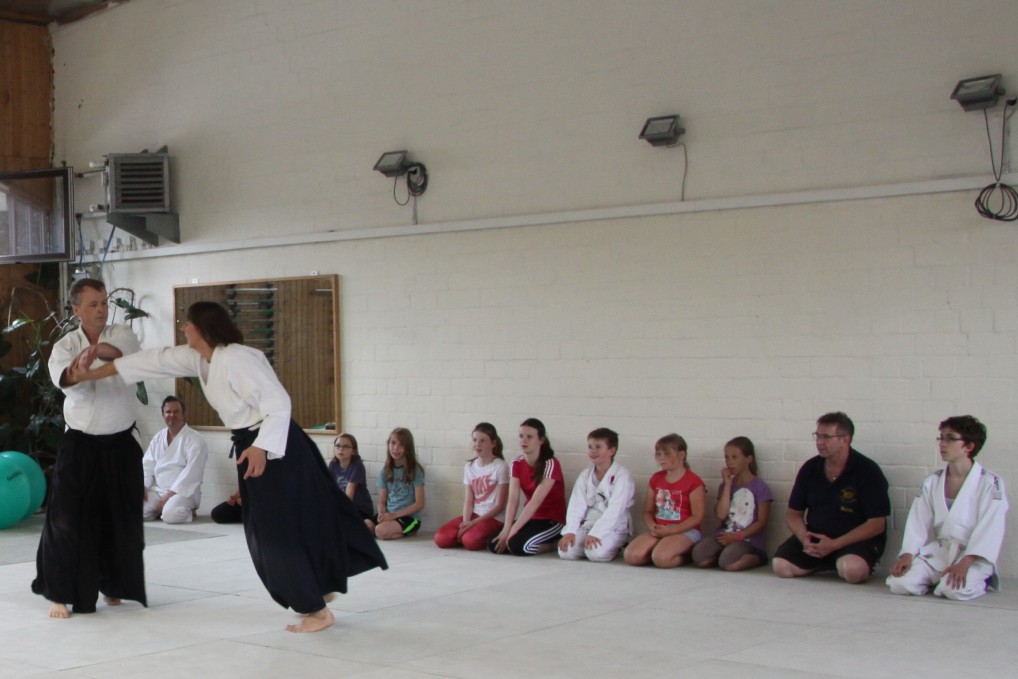 Unter den wachsamen Augen der Lehrgangsleiter Thomas Becke, Michael Langhans (Kinder) und Christian Fulda (Erwachsene) konnten die Teilnehmer verschiedene Elemente des Aikido ausprobieren. Die Teilnehmer hatten innerhalb der kurzen Zeit bereits Gelegenheit verschiedene Halte- und Wurftechniken kennen zu lernen und zu üben. Die dazu notwendige Fallschule wurde ebenfalls von Grund auf eingeführt, während des Lehrgangs intensiviert und systematisch geübt. Für die Lehrgangsteilnehmer war dabei war die Dojo-Etikette genauso ungewohnt wie die seltsamen Begriffe und nicht zuletzt die Bewegungen. Aikido, welches eine sehr wirkungsvolle Methode der Selbstverteidigung darstellt, zeichnet sich im Training durch weiche, drehende und fließende Bewegungen aus. Diese erschließen sich beim ersten Zusehen nicht immer sofort und müssen wiederholt geübt und ausprobiert werden, bis sich der gewünschte Effekt einstellt.